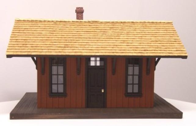 The model 0410 Minnesota & Northwestern Flag Stop Depot was used on the Motor Line in the suburbs of St. Paul, Minnesota around 1871. The reason for choosing this depot was not based upon its lineage, but based upon its classic look of the late 1800's! The tall narrow windows and doors of the depot produce an unique look that makes the depot appear larger than it actually is. The long overhang of the eaves of the roof, provide needed shelter for its passengers, a major requirement for depots of the northern and mid-west portions of the country. Overall, it is a perfect fit for any branch line of narrow gauge railroad!