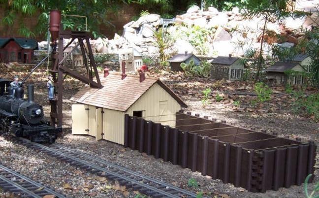 The sand bin timbers are also made of redwood along with the vertical piles, attached to a heavy PVC base. Just like the prototype, the bin features tie rods between the piles, which we make from brass rod. The normal sand bin shipped with each structure is one half the length of the actual structure. However, if you have room, we offer a longer sand bin that matches the prototype length.
